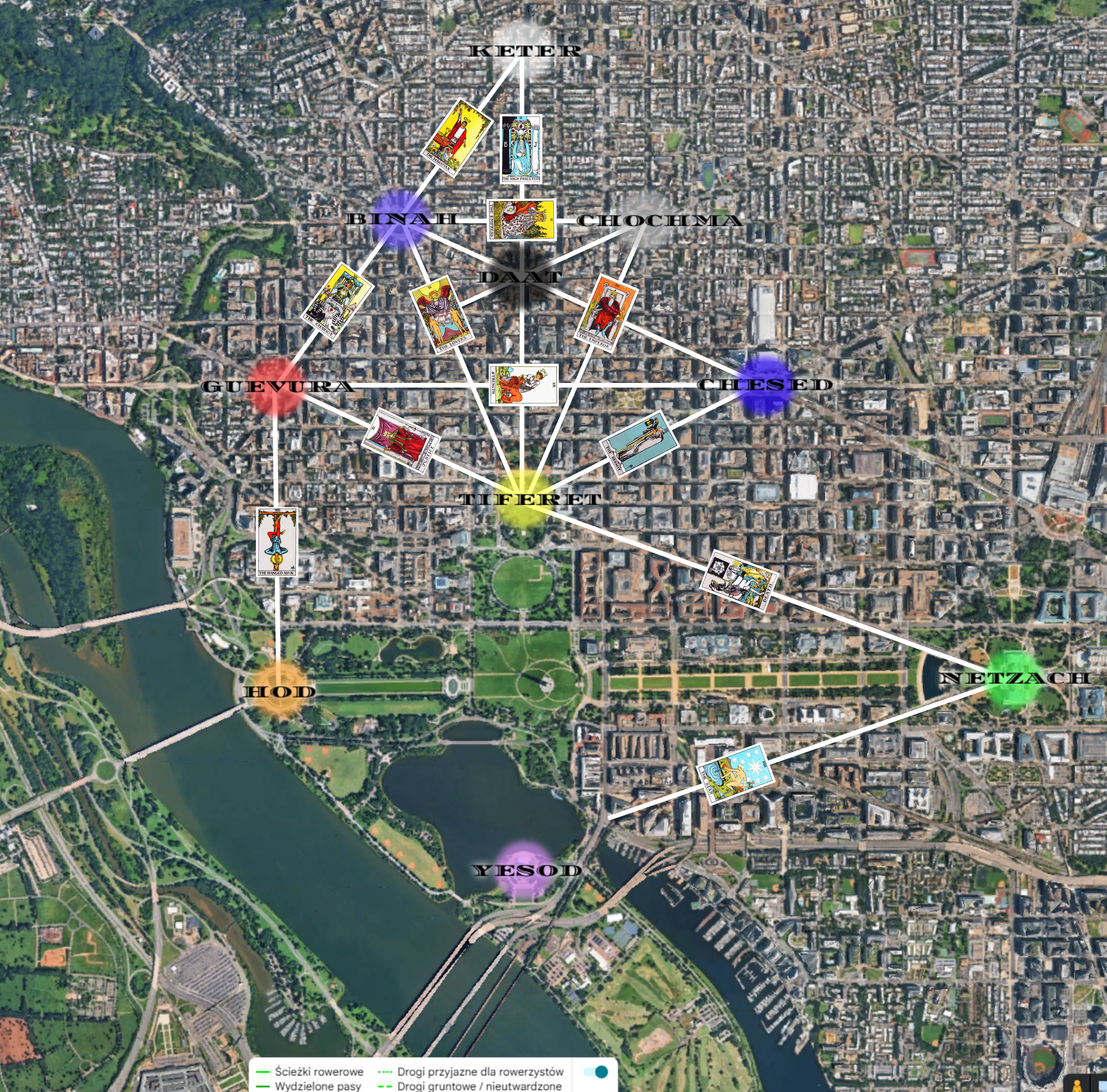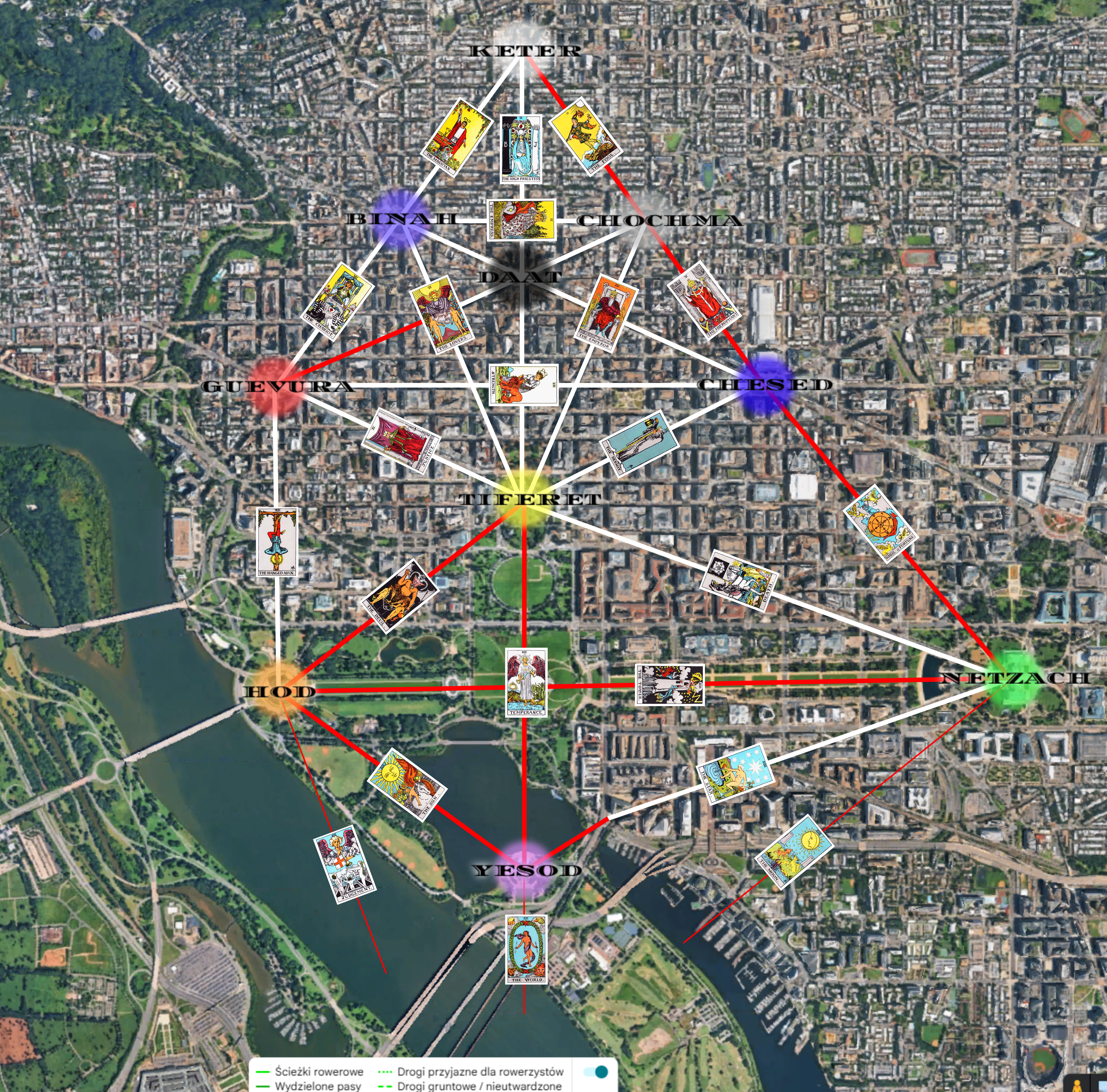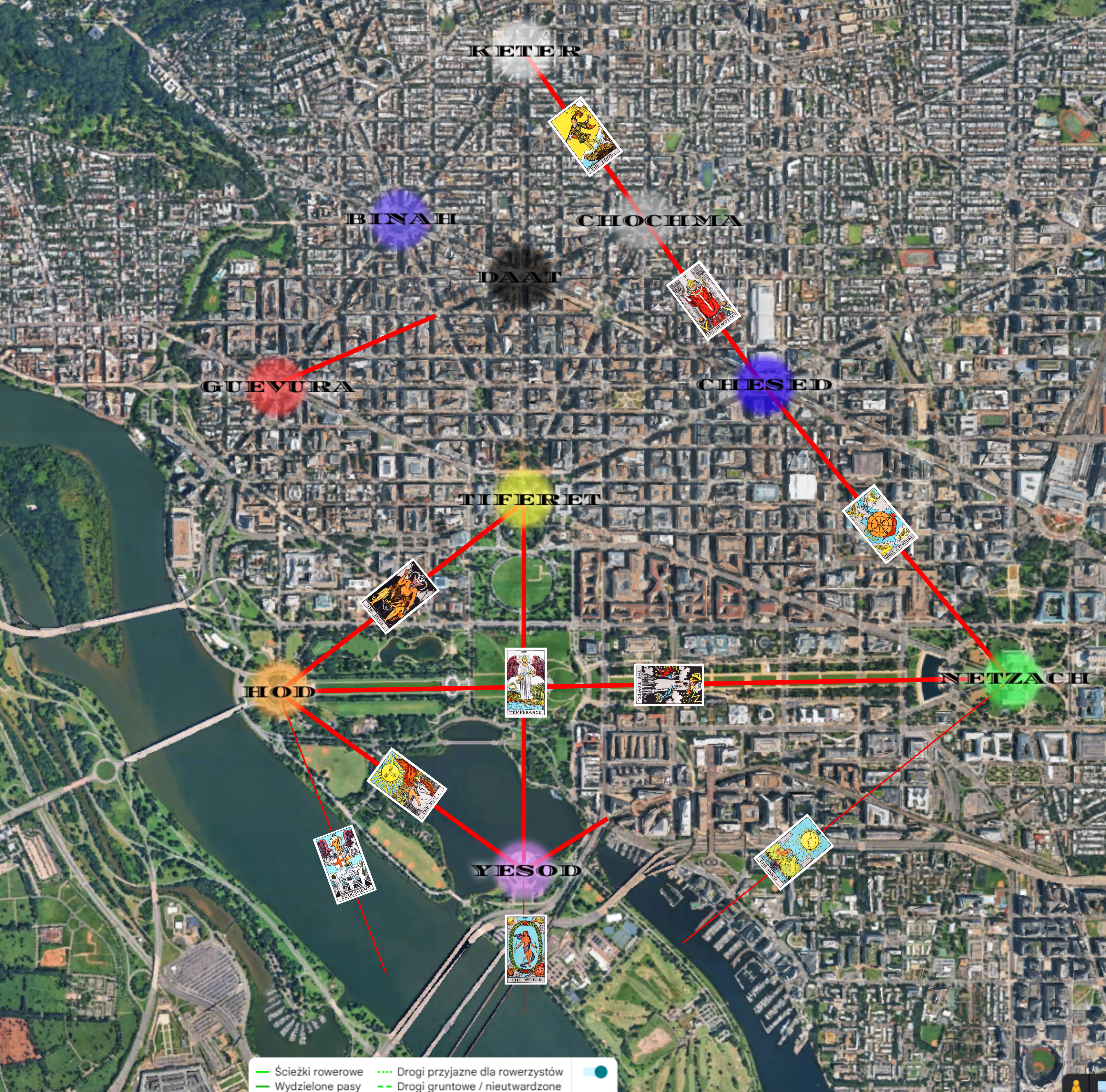 W planie stolicy USA odnaleźć można odwzorowanie Drzewa Życia z kabały – mistycznego diagramu, który od wieków opisuje strukturę wszechświata i człowieka. Nie jest to jednak odwzorowanie pełne. Wiele ścieżek pomiędzy sefirotami – kanałów energii, które w tradycji hermetycznej symbolizują procesy transformacji duchowej – zostało celowo pominiętych.
