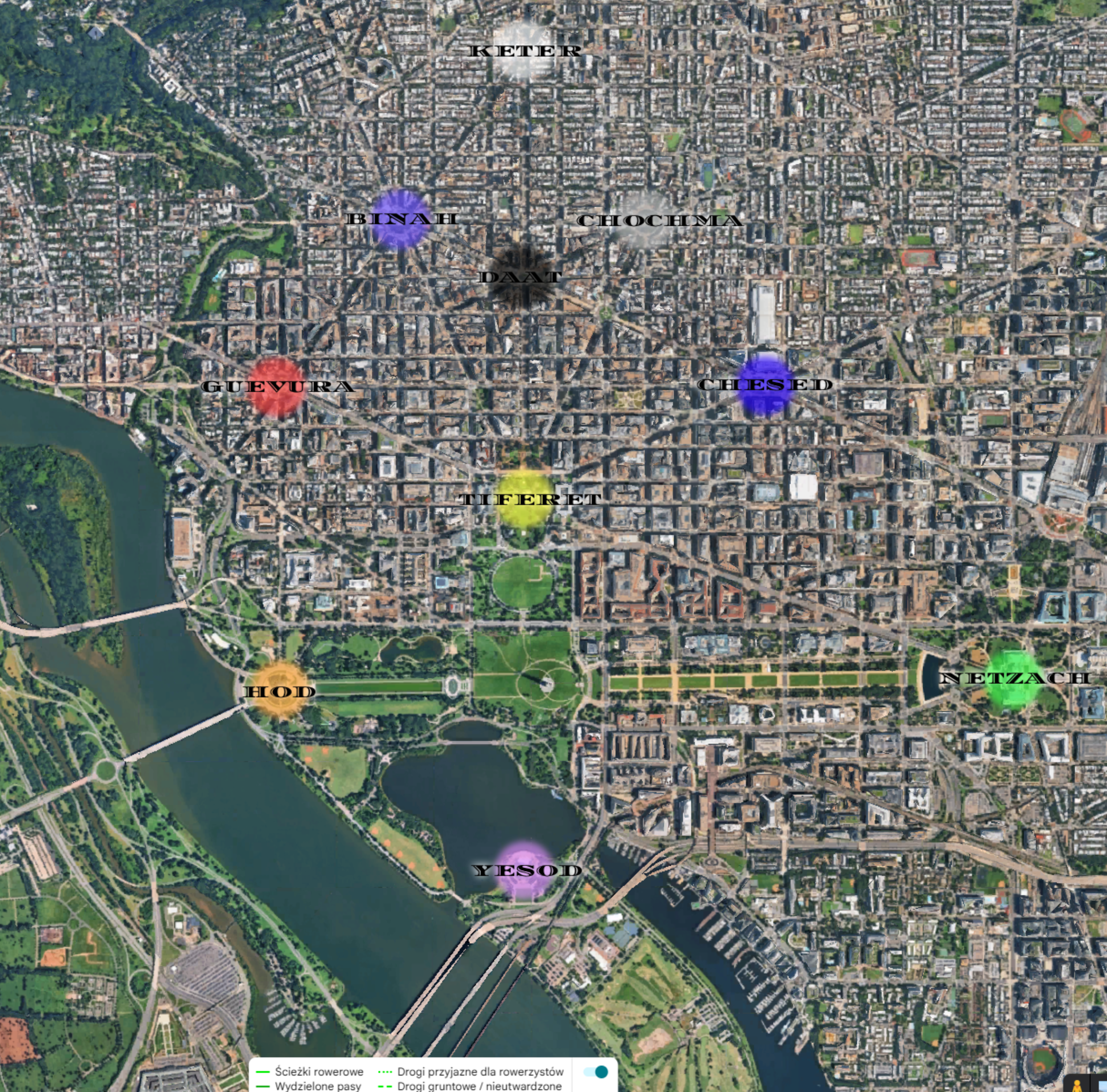 Główne punkty – odpowiedniki sefirotów w układzie Waszyngtonu